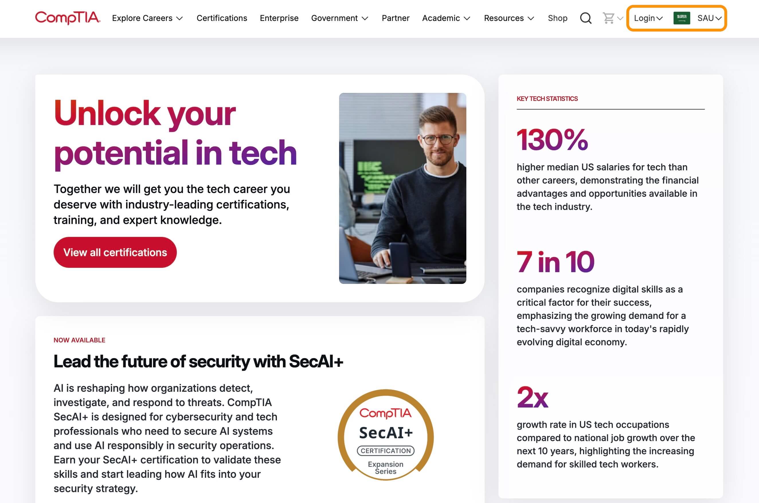 اذهب لموقع CompTIA الرسمي من هنا ( https://www.comptia.org/en )
