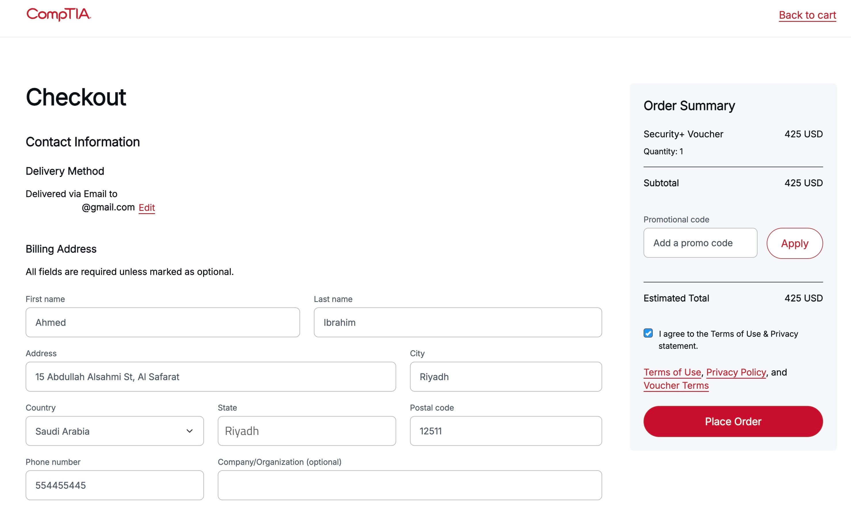 ملحوظه : المثال المطبق سيكون علي شهادة +Security عن طريق المملكة العربية السعودية - نفس الطريقة تنطبق على جميع شهادات شركة CompTIA